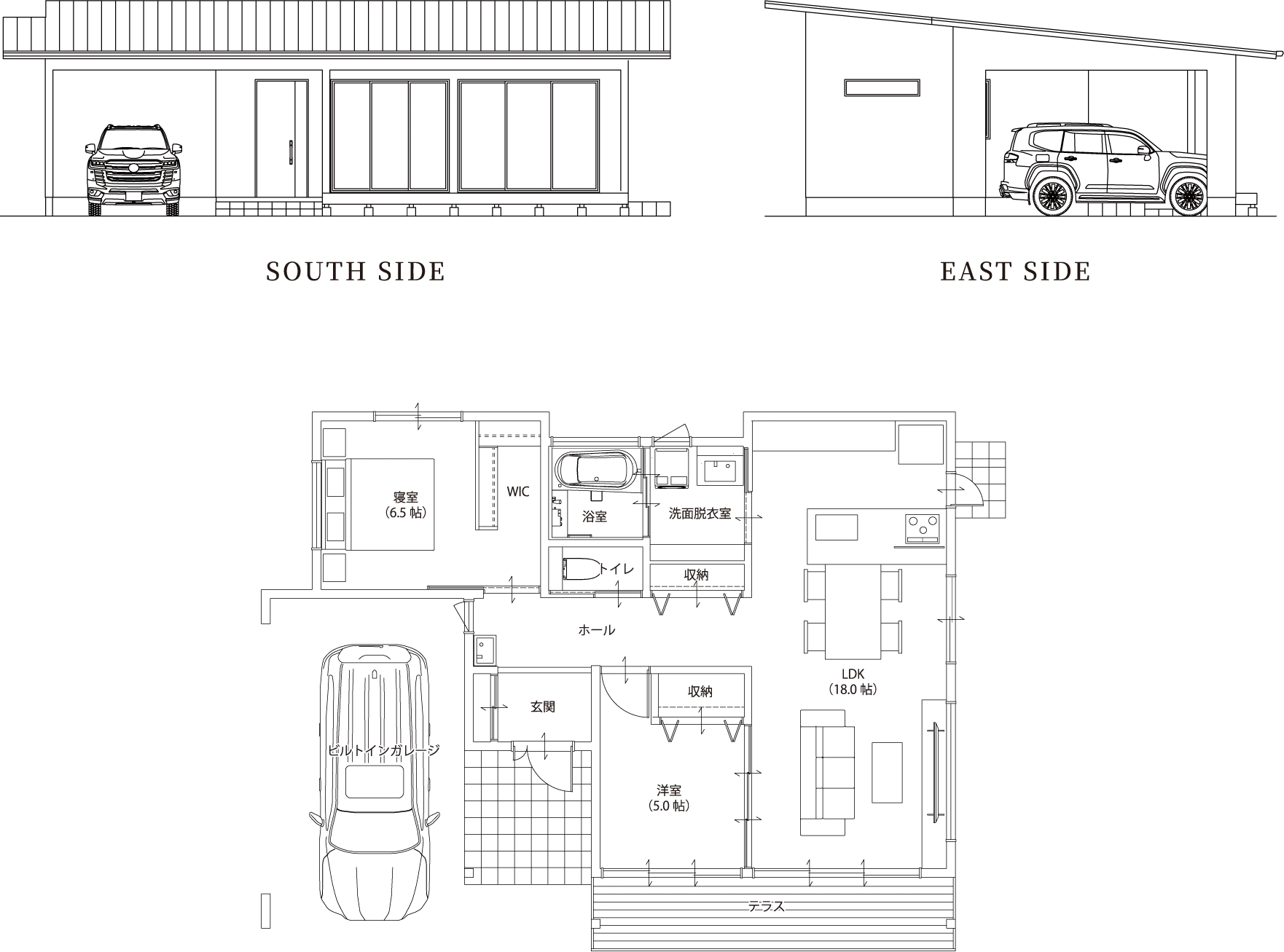 老後も安心なビルトインガレージ付きの平屋