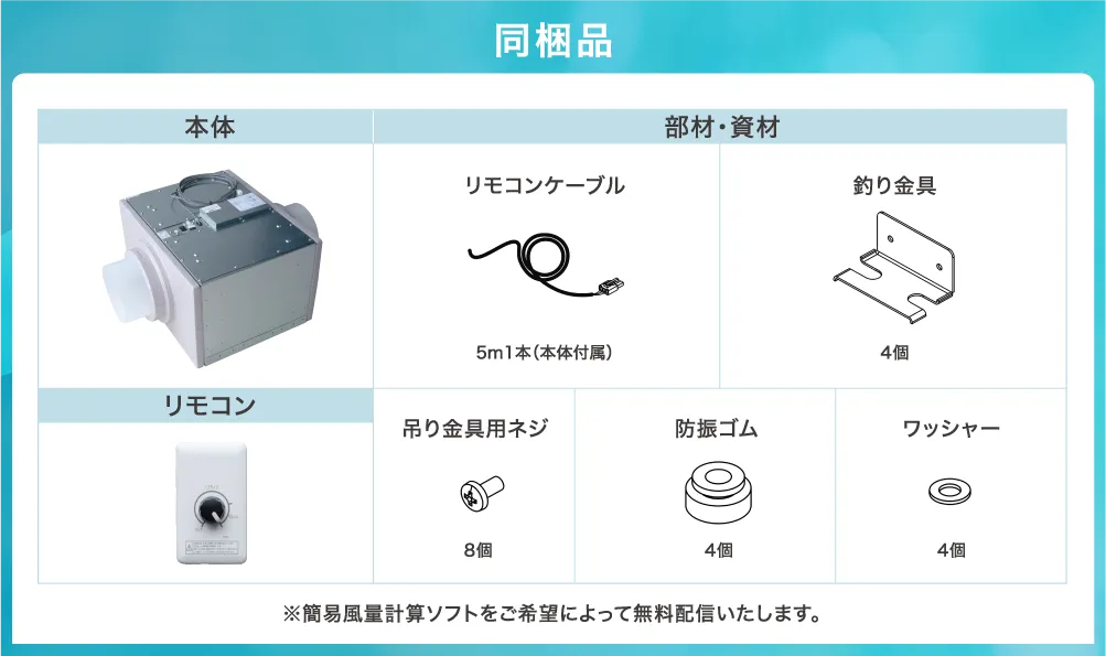 最大風量別にS、M、Lの3つのラインナップ。規模などに応じて的確な風量設計が出来ます。